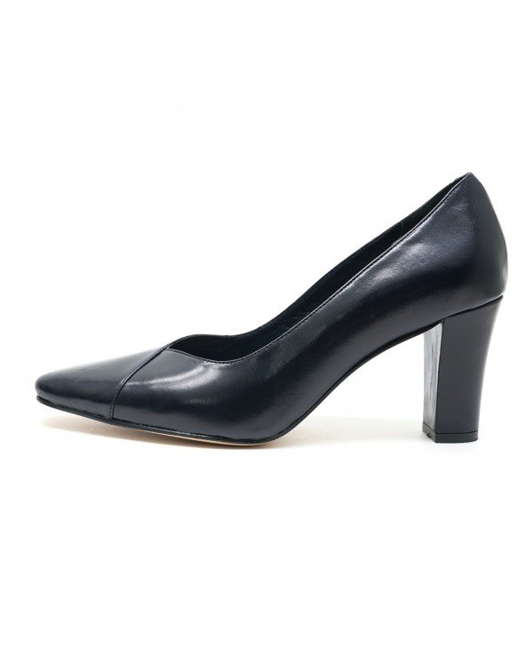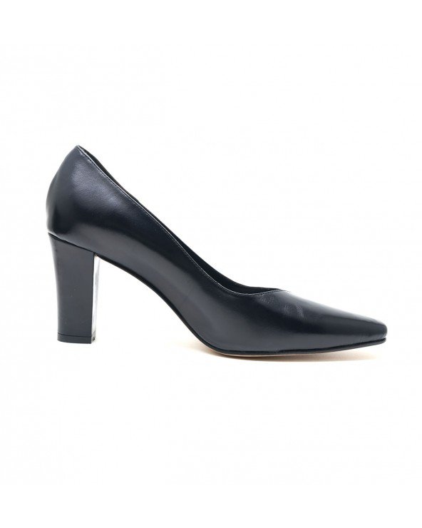 CHAUSSURE EN CUIR BOUT CARRÉ - BLEU-NUIT